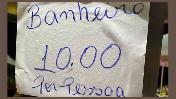 Um dos destinos mais cobiçados pelos veranistas nas férias de julho são as famosas praias de Salinas, no nordeste paraense. No entanto, não está nada em conta passar o verão por lá. Na primeira quinzena do mês, os vevanistas já haviam reclamado de preços elevados no local, onde um prato com peixe chegou a custar R$ 400 reais em um dos cardápios da região.X-Tudo de R$ 70: preços em Salinas viralizam na web Não é de hoje que os valores costumam ficar “salgados” em alta temporada, embora a praia do Atalaia, por exemplo, não receba somente turistas nesta época.Novamente, um valor um tanto incomum cobrado em um banheiro chamou a atenção. Na placa, o usuário precisa pagar R$ 10 (por pessoa) para usar o banheiro de um estabelecimento em Salinas. O registro foi compartilhado pelo cantor do Nosso Tom, Júlio Cezar Patrício, em seu perfil no Instagram. “Não pode dar nada errado por aqui”, brincou ele com a situação.