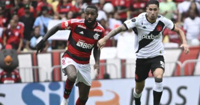 No clássico do Milhões, o Flamengo aproveitou um desvio para vencer o Vasco por 1 a 0, neste domingo (22), pela 28ª rodada do Brasileirão 2023, em partida realizada no estádio do Maracanã, no Rio de Janeiro (RJ).Após um primeiro tempo equilibrado e com chances de gol para ambos os times, o Mengão chegou a vitória aos 31 minutos do segundo tempo, quando o volante Gerson chutou cruzado, a bola desvia na zaga e trai o goleiro cruzmaltino.Sob comando de Tite, o Flamengo chega a segunda vitória seguida e com isso passa o RB Bragantino e assume momentaneamente a vice-liderança do Brasileirão, com 50 pontos, nove atrás do Botafogo, que tropeçou diante do Athletico-PR.CONTEÚDO RELACIONADOGlobo cobrará valor recorde a patrocínios do BrasileirãoMano foca no Brasileirão e adia renovações no CorinthiansSantos e Grêmio empatam no Brasileirão. Veja os gols!Já o Vasco se mantém na 17ª posição, na zona de rebaixamento da competição com 30 pontos ganhos.Quer saber mais de esporte? Acesse o canal do DOL no WhatsappNa próxima rodada, o Flamengo visita o Grêmio em Porto Alegre (RS), na quarta-feira (25), enquanto que o Vasco recebe o Internacional no Rio de Janeiro, na quinta-feira (26).E MAIS