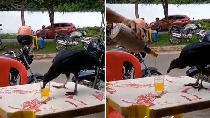 No entanto, uma coisa é certa e confirmada: um urubu, aparentemente com muita sede ou, digamos, um paladar peculiar, foi flagrado tomando cerveja na mesa de um bar.
