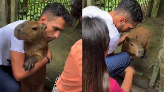 capivara estava sendo criada dentro de casa. Nem duvido que ele gostasse dela,