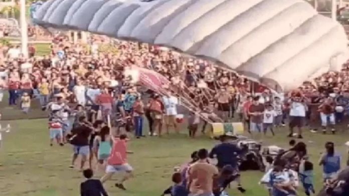 Vídeo: paraquedista acerta mulher durante descida de voo